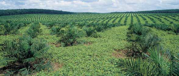 油棕園種植豆科作物,主要目的是通過根瘤菌固定空氣中的氮,成為肥料供植物應用。在油棕還未長大時,豆科作物也可覆蓋園丘土面,減少土壤流失。這些豆科作物在陽光下生長得很快,但不會影響油棕得生長。當油棕樹稍長大后,又能由耐蔭得豆科植物取代。有些種植人還用空果串或割下得油棕葉,覆蓋在油棕行間或臺梯間,這可保持土壤得水分及再循環養分。